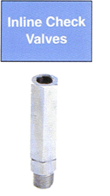 Inline check valves This is installed between the nozzle and the liquid feed pipe and when it is necessary to repeat start and stop of pump in a short time and to inject and stop spray instantly. The closing pressure of the check valve is 0.5kg/cm2. |